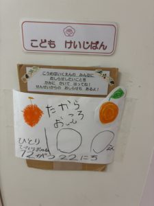 その後のゆずゆ(足湯)の際には3歳児がうれしそうに入浴案内(1回100円)の案内をつくってくれました。