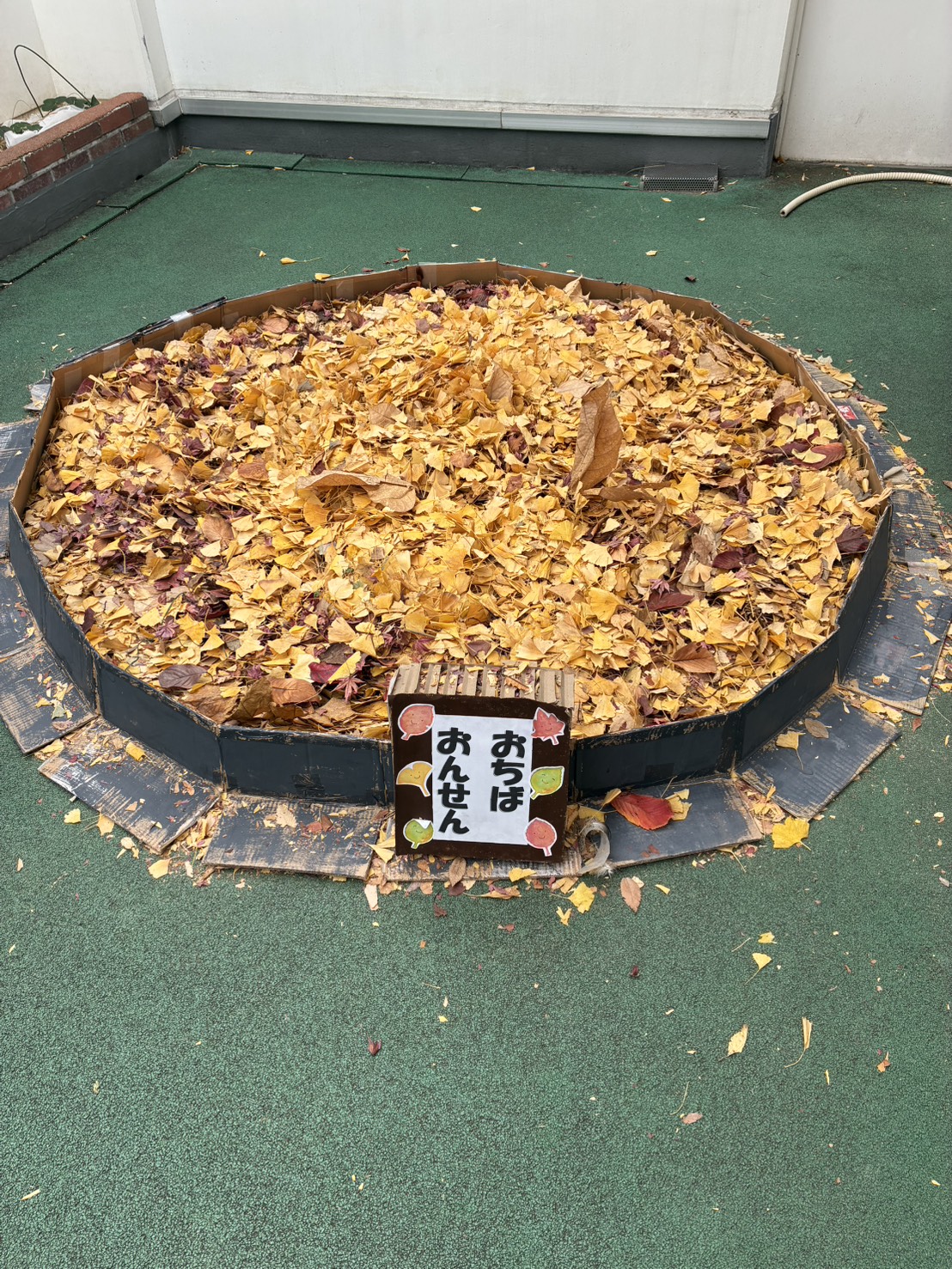 お店屋さんごっこでお金に興味を持った子ども達、その後に落ち葉を使った「かれは温泉」に大盛り上がり。